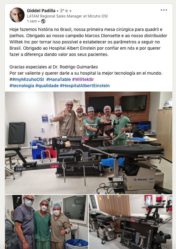 A Willtek, juntamente com a Mizuho OSI, fizeram história no Brasil e implementaram a primeira mesa cirúrgica especializada para quadril e joelhos no Hospital Israelita Albert Einstein. Nós passamos uma semana no hospital, realizando o treinamento da equipe e o modelo já foi usado em uma artroscopia de quadril em prótese total pelo Dr. Henrique Berwanger Cabrita. Esperamos que possa fazer toda a diferença para otimizar os procedimentos que ainda serão realizados!