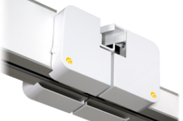 - Usado para conectar dois sistemas de trilhos. É possível conectar dois sistemas de trilhos – entre o quarto e o banheiro, por exemplo – para garantir uma movimentação fácil e confortável para o paciente.